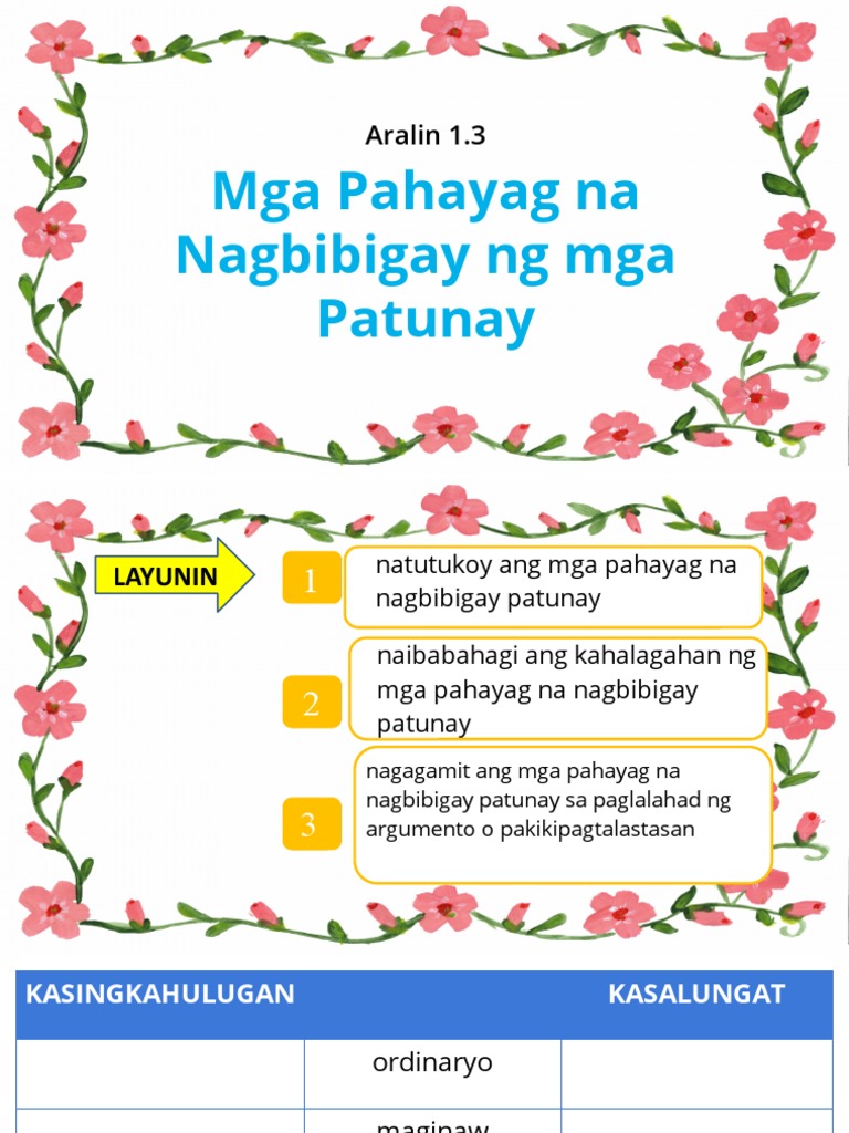 Aralin 1 3 Mga Salita Sa Pagpapatunay