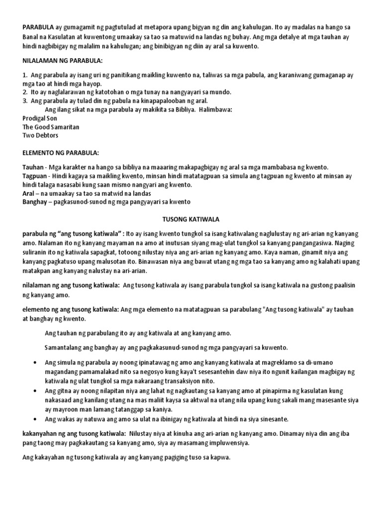 Nilalaman Ng Parabula Ano Ang Mga Nilalaman Ng Parabula
