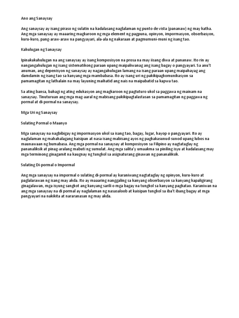 Ano Ang Sanaysay Ang Sanaysay Ay Isang Piraso Ng Sulatin Na Kadalasang Naglalaman Ng Punto De Vista