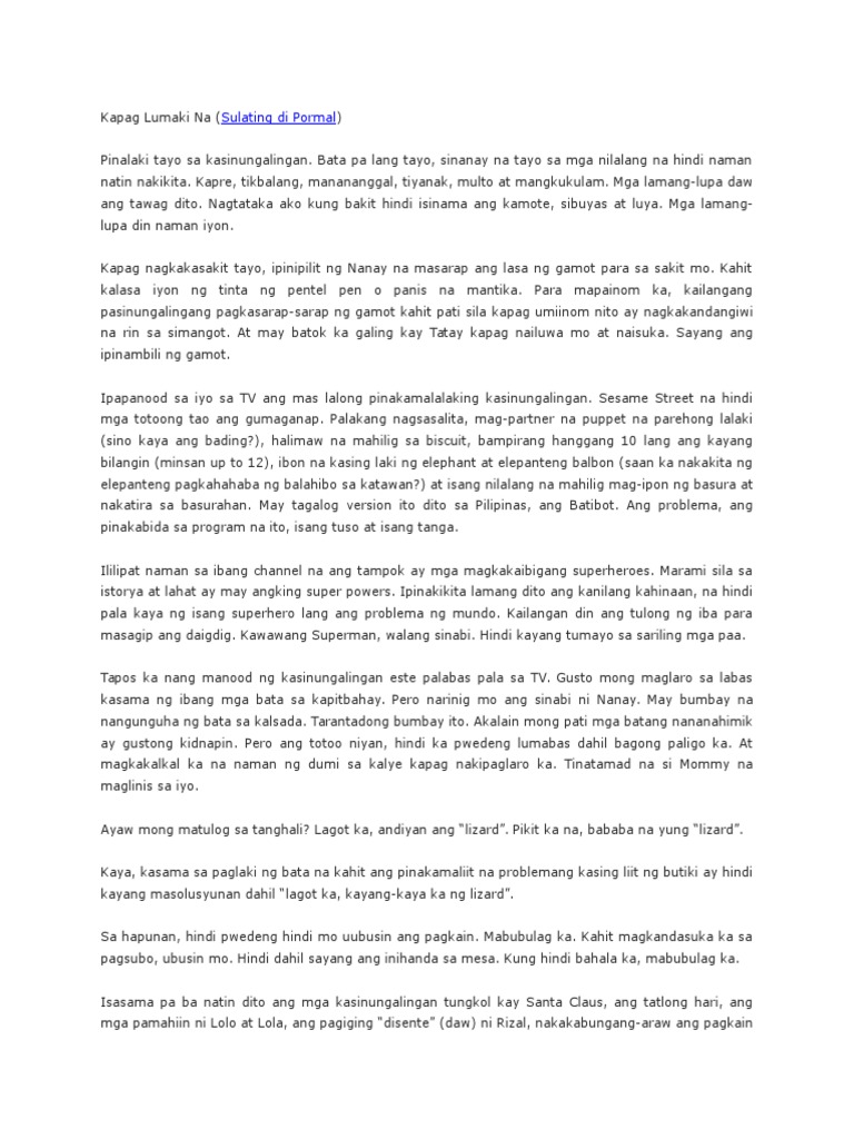 Halimbawa Ng Di Pormal Na Sanaysay Kahulugan At Halimbawa