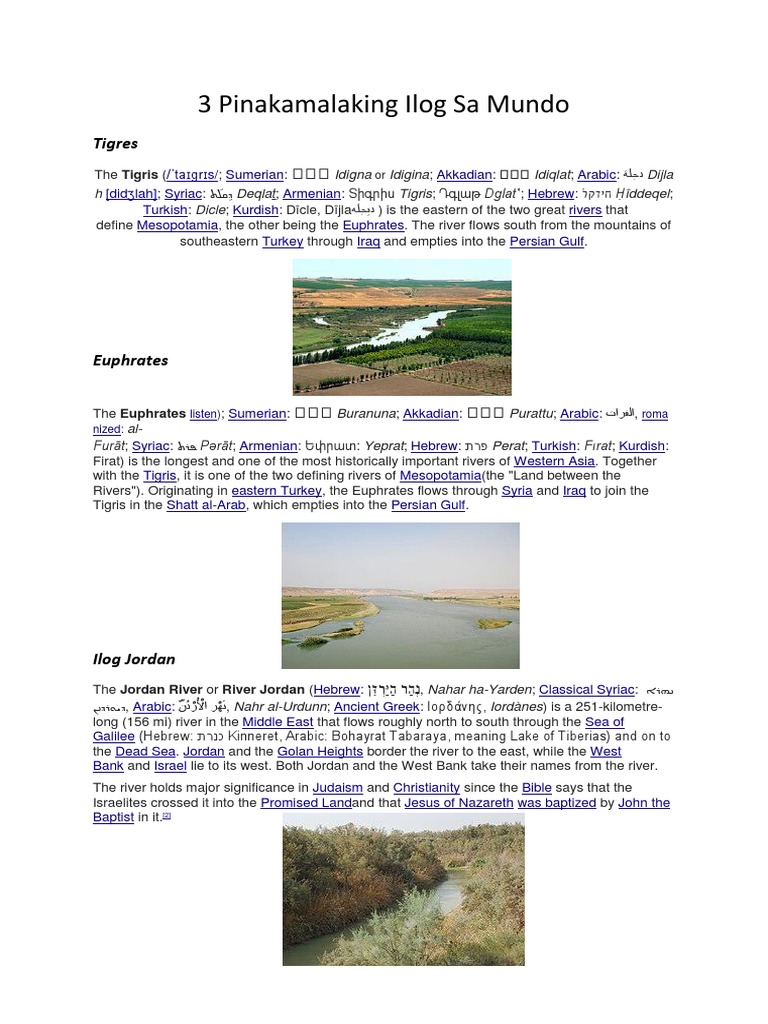 3 Pinakamalaking Ilog Sa Mundo Euphrates Tigris
