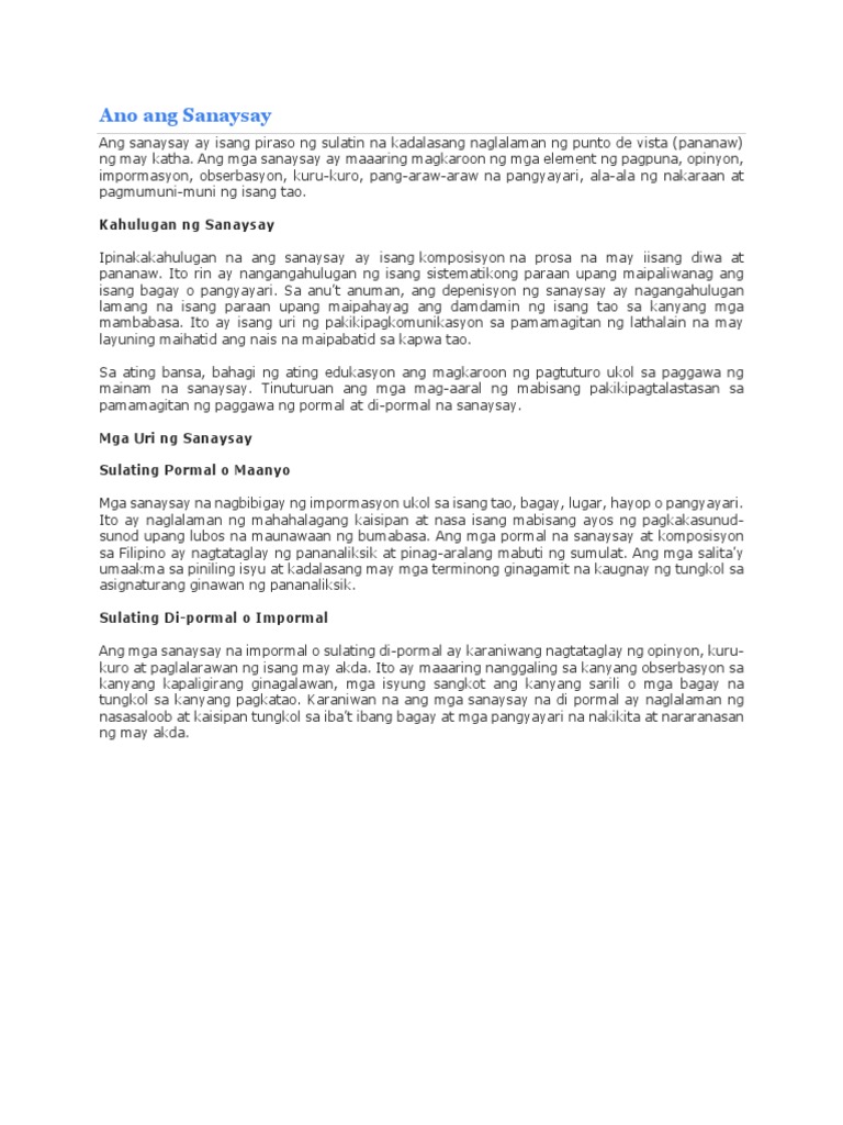 Sanaysay Katuturan Anyo At Uri Ano Ang Sanaysay