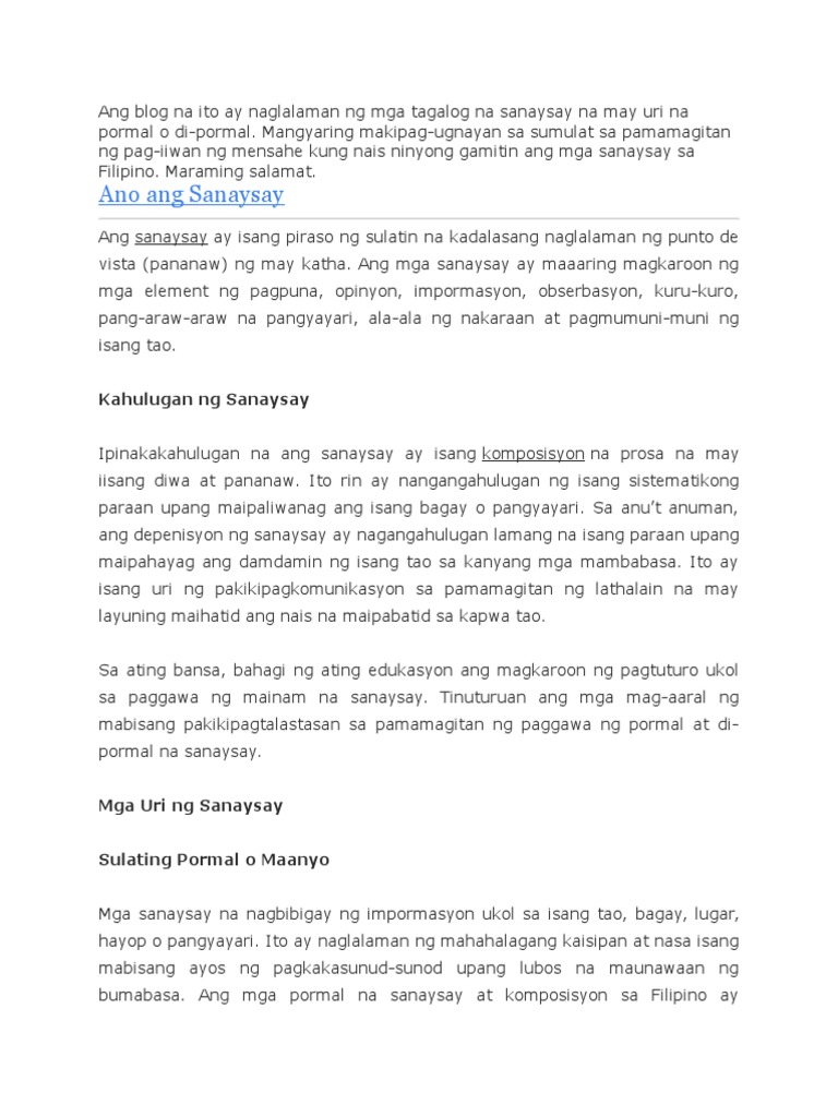 Ang Blog Na Ito Ay Naglalaman Ng Mga Tagalog Na Sanaysay Na May Uri Na Pormal O Di Docx