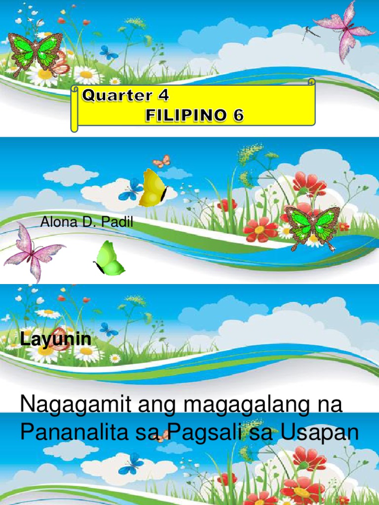 A sino b makatulong c pwede d ho 7 Magalang ko pong ipinapasok ang ang pangalan ni. Naibibigay ang paksa ng napakinggang kuwentousapan 7 1 Nakababasa at nasasagutan ang mga tanong sa napakinggan kuwento. 2015-07-12 Paggamit ng Magagalang na Pananalita na angkop sa ibat ibang sitwasyon Slideshare uses cookies to improve functionality and performance and to provide you with relevant advertising.