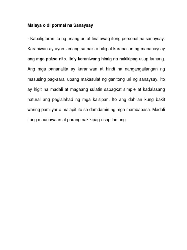Halimbawa Ng Di Pormal Na Sanaysay Kahulugan At Halimbawa