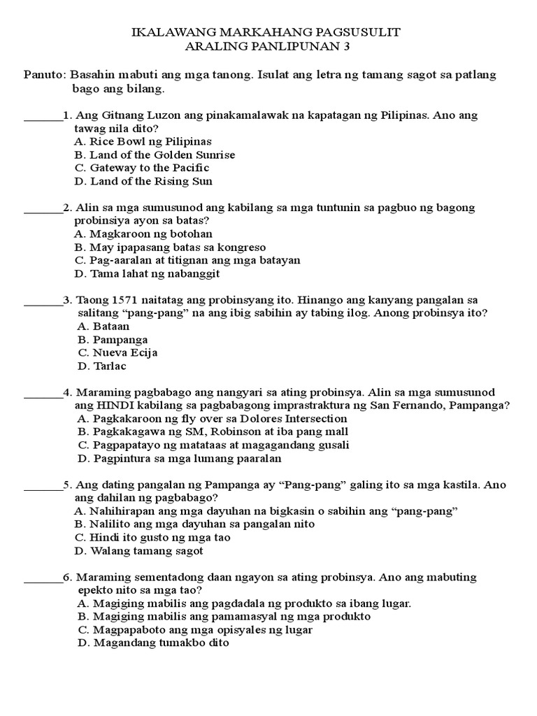 Gulong at palakol Pampanga Bulacan Zambales Bataan5. Guhitan ang tamang sagot sa loob ng panaklong kung kaninon sumusunod na simbolo1. Ulo ng kalabaw Zambales Bulacan Nueva Ecija Aurora3.
