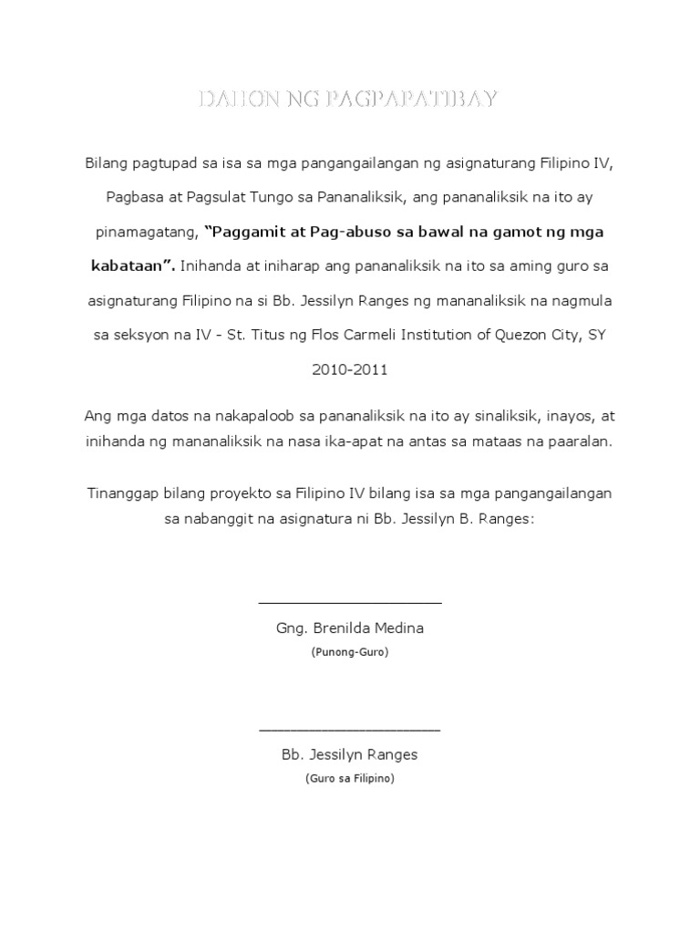 Ang pagkalat nito ay isang malaking dagok sa ating lipunan hindi lamang dahil sa maraming buhay na nawawasak at napipinsala kundi gayundin ang kayamananpag-aari nating nasasayang. Get custom papers created by academic experts. Pananaliksik sa Filipino Iligal na Droga Inihanda nila.
